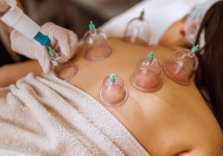 Cupping is an ancient therapeutic. This method promotes circulation, reduces inflammation, and alleviates pain by drawing blood to the surface of the skin.
